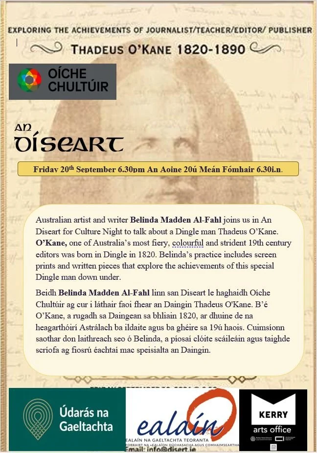 In September, I travelled to the Republic of Ireland and London, to present my project on Thadeus O’Kane and to continue my research.